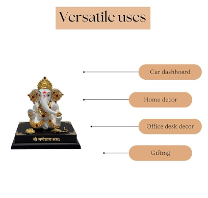 - Premium Interior Accessory: Beyond its religious significance, this gold-plated Ganesh idol doubles as a luxurious interior accessory, elevating the ambiance of any car or office space with its decorative charm, and sitting proudly on a desk or tabletop.