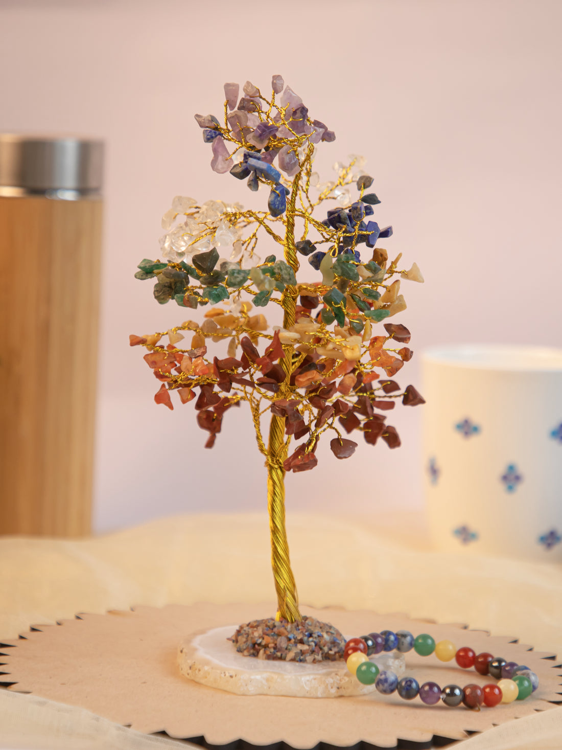 7 Chakra Crystal Tree with Bracelet – For Meditation, Positive Energy, Vastu & Spiritual Balance