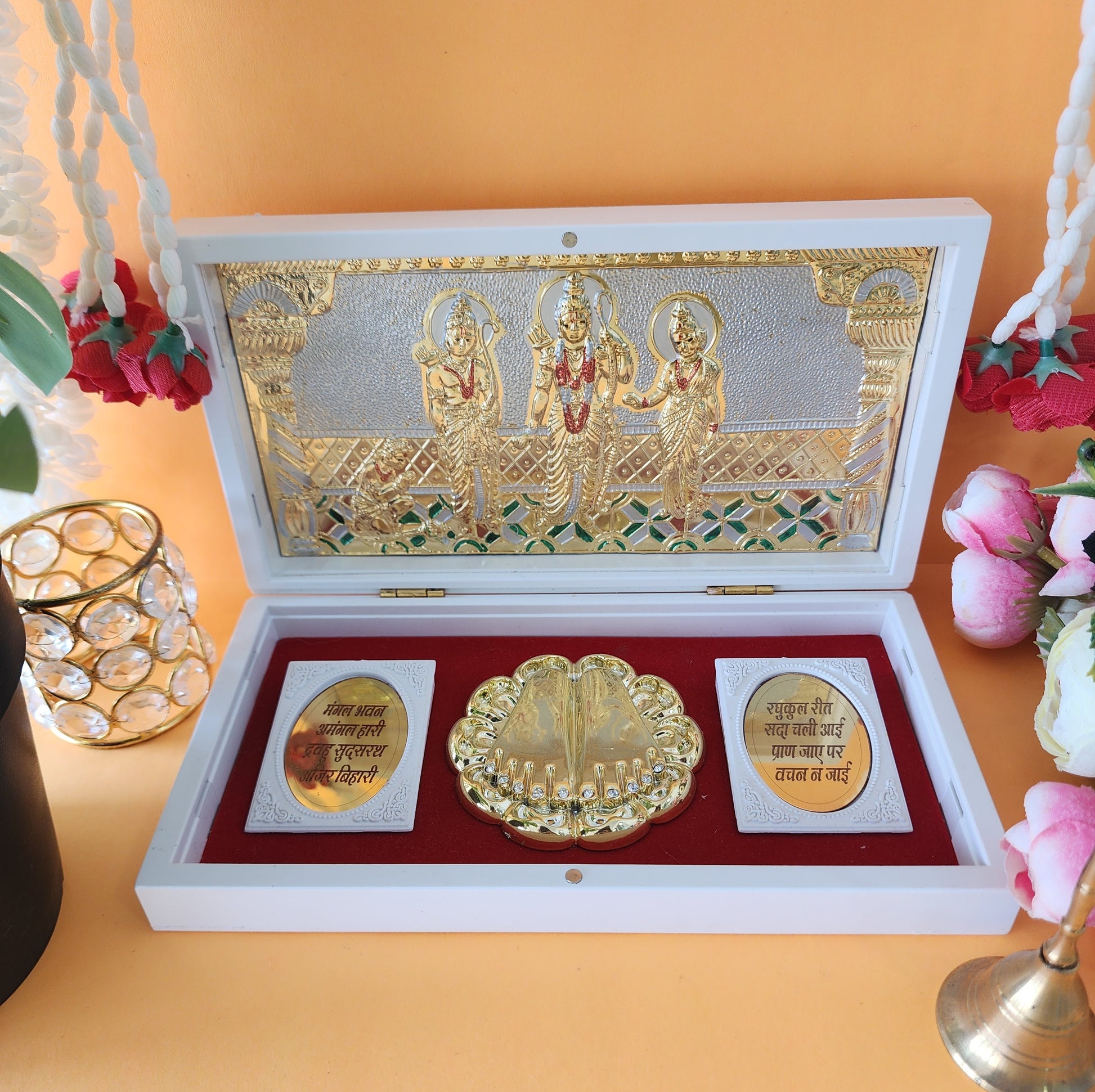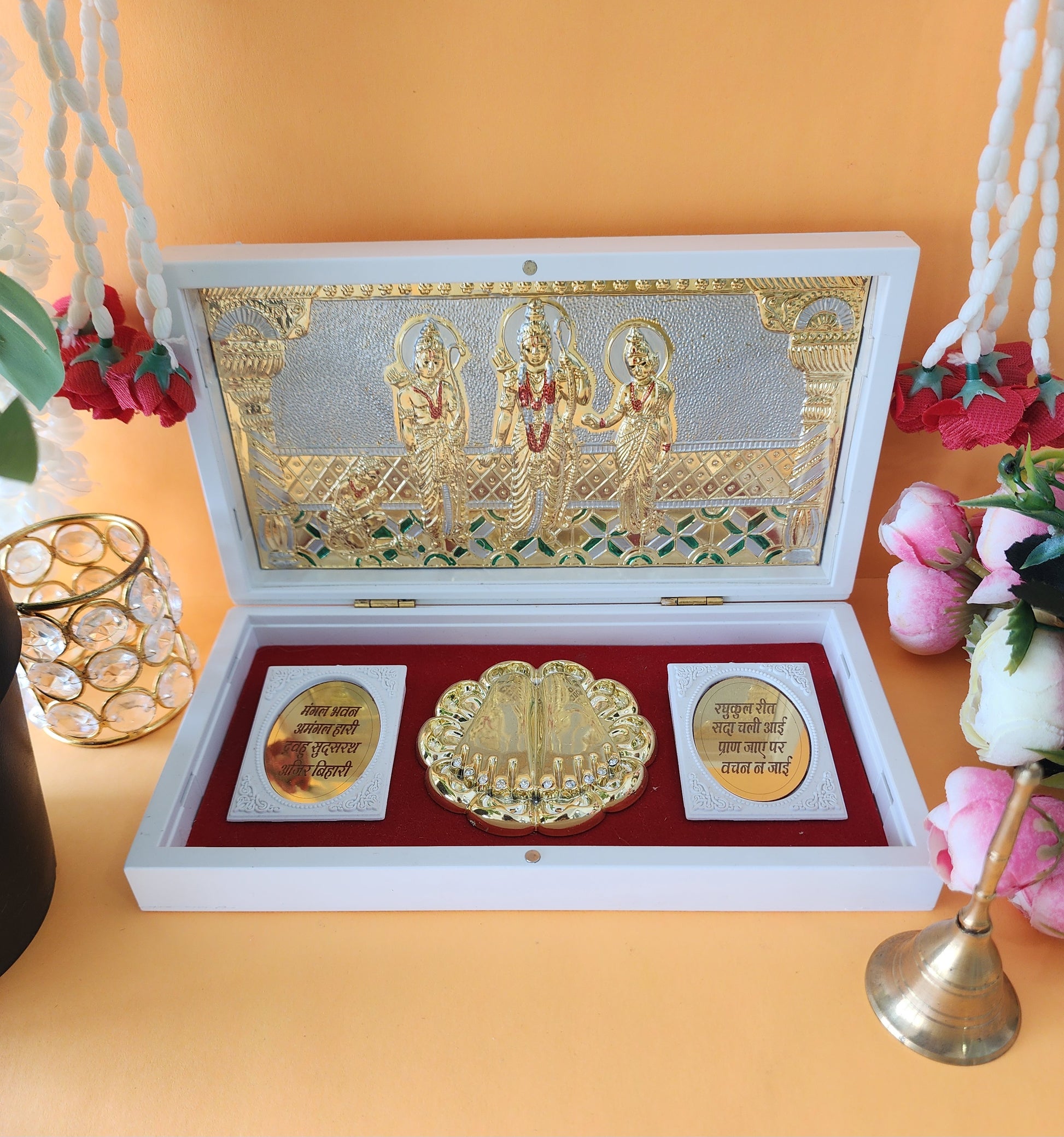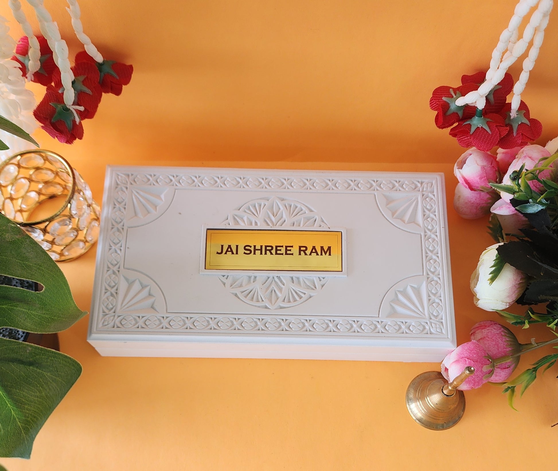 - Versatile Placement: Ideal for altars, prayer rooms, or as a centerpiece, the Ram Darbar in white serves as a focal point, bringing a sense of tranquility and auspiciousness into your home.
