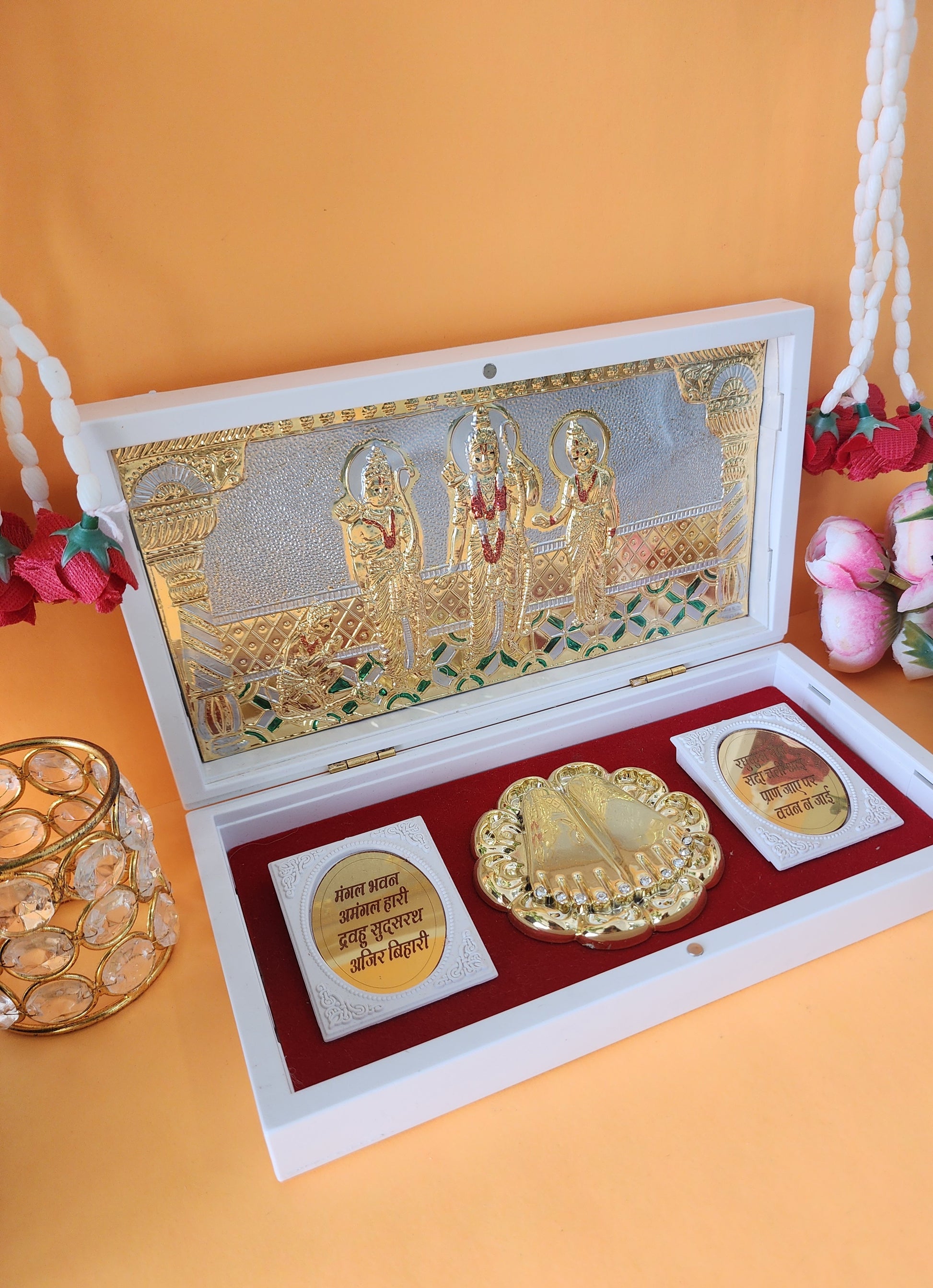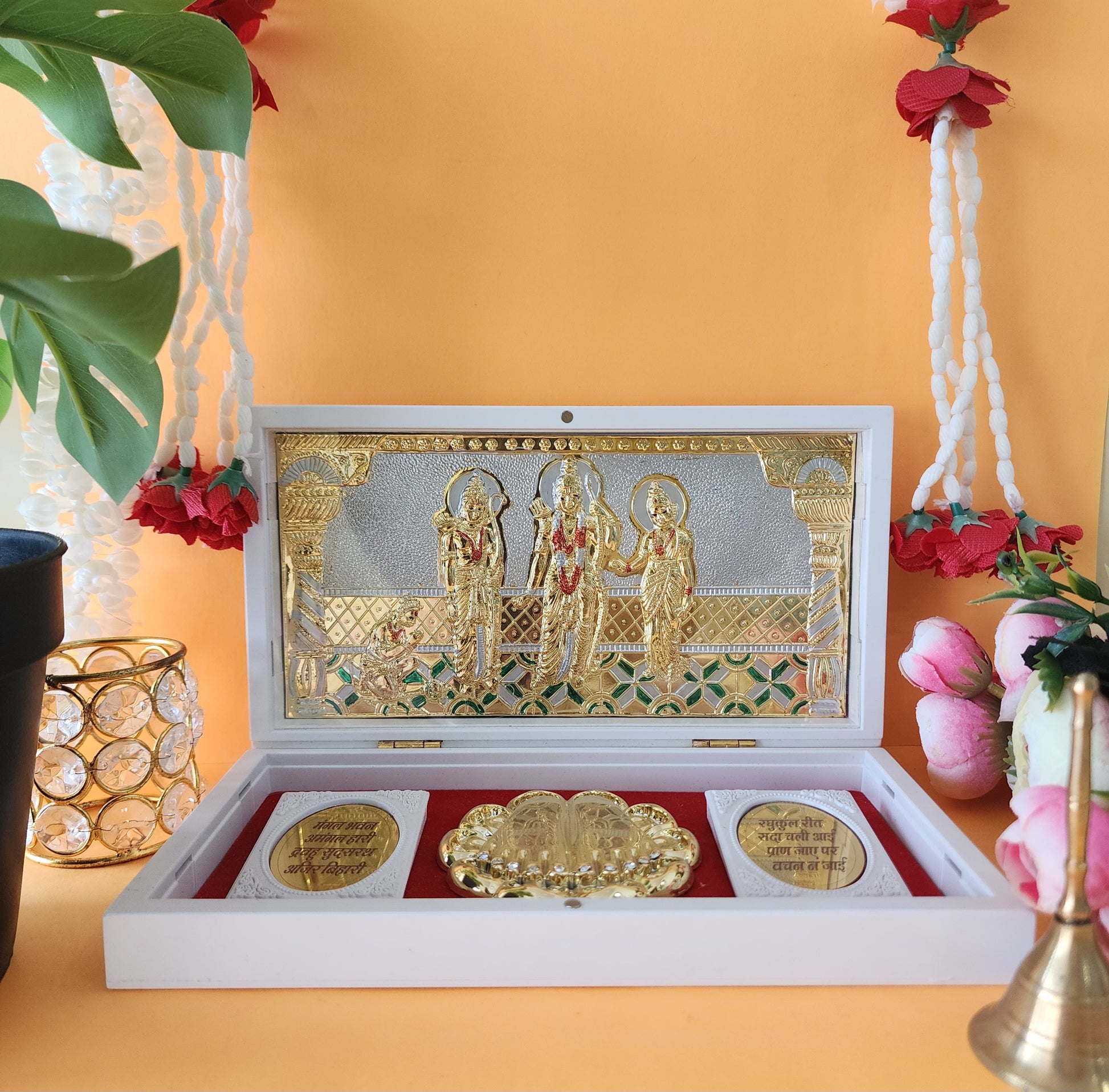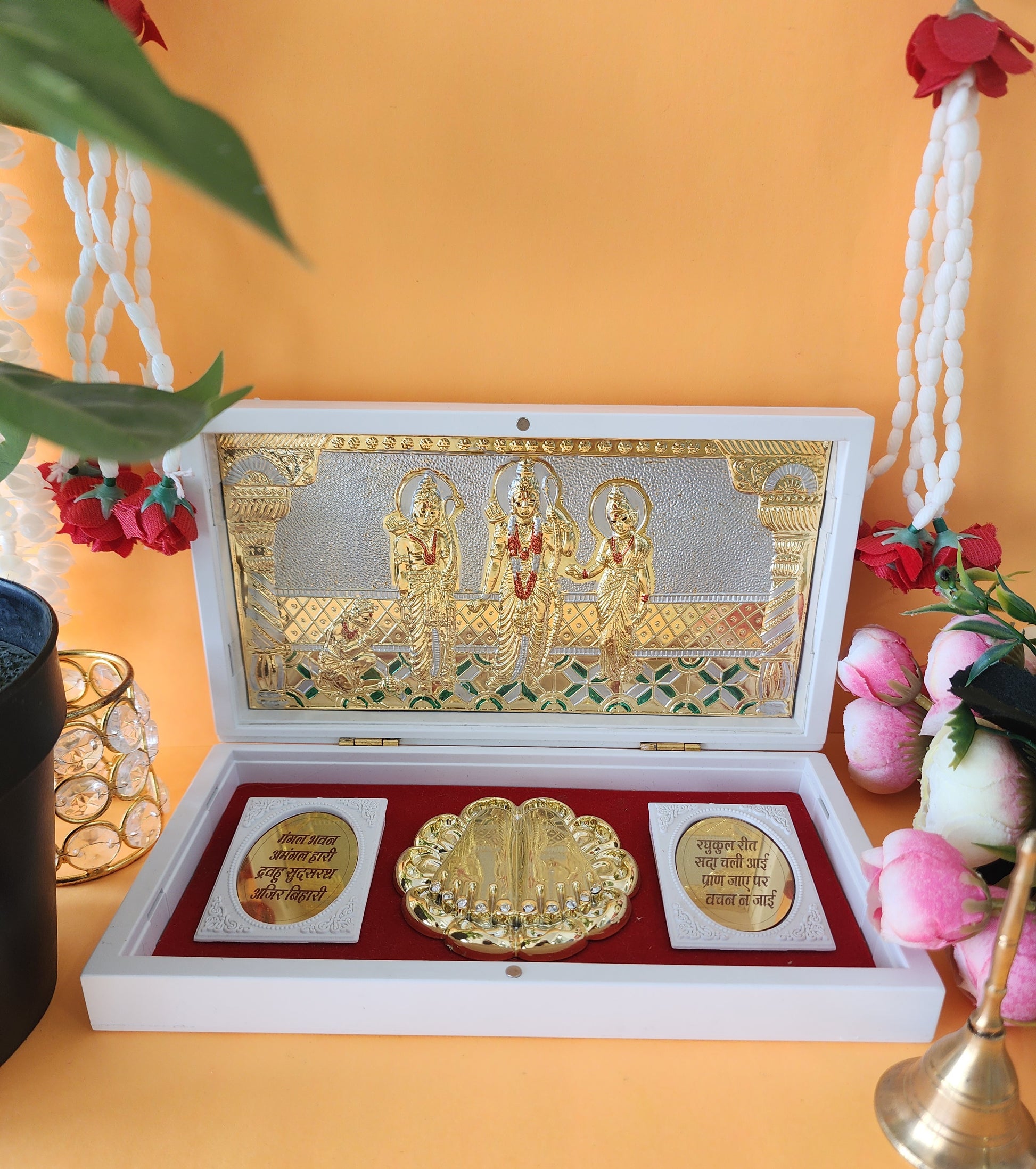 - Versatile Placement: Ideal for altars, prayer rooms, or as a centerpiece, the Ram Darbar in white serves as a focal point, bringing a sense of tranquility and auspiciousness into your home.