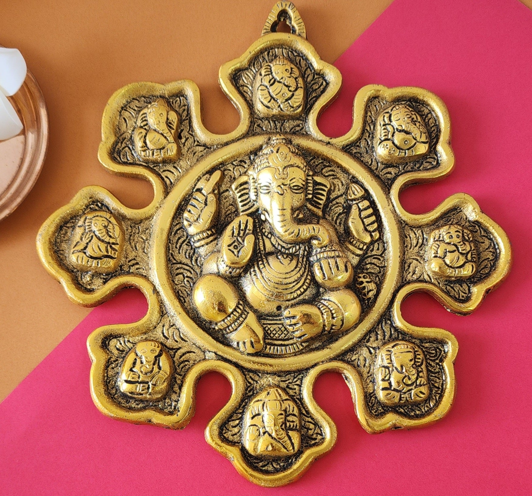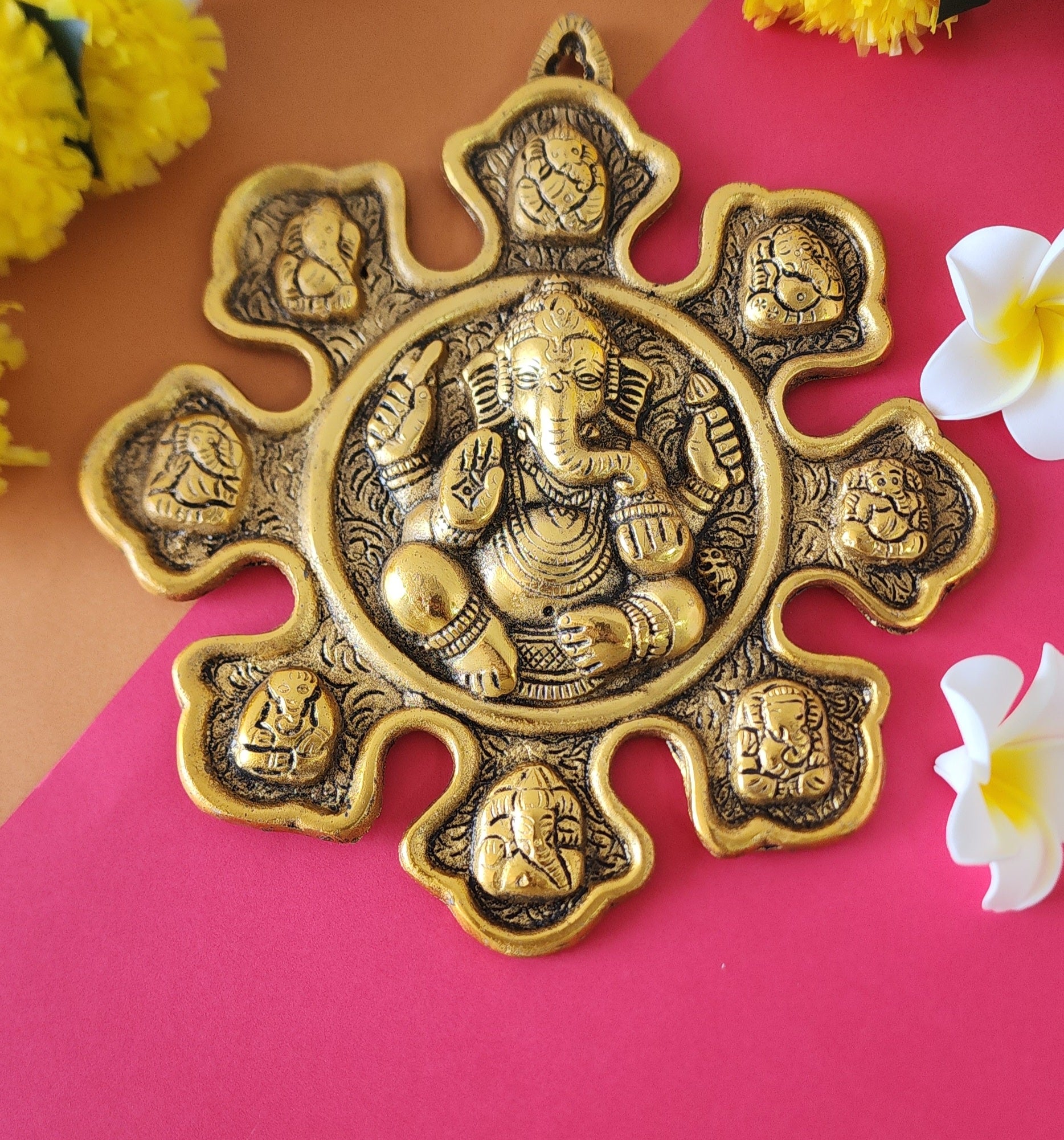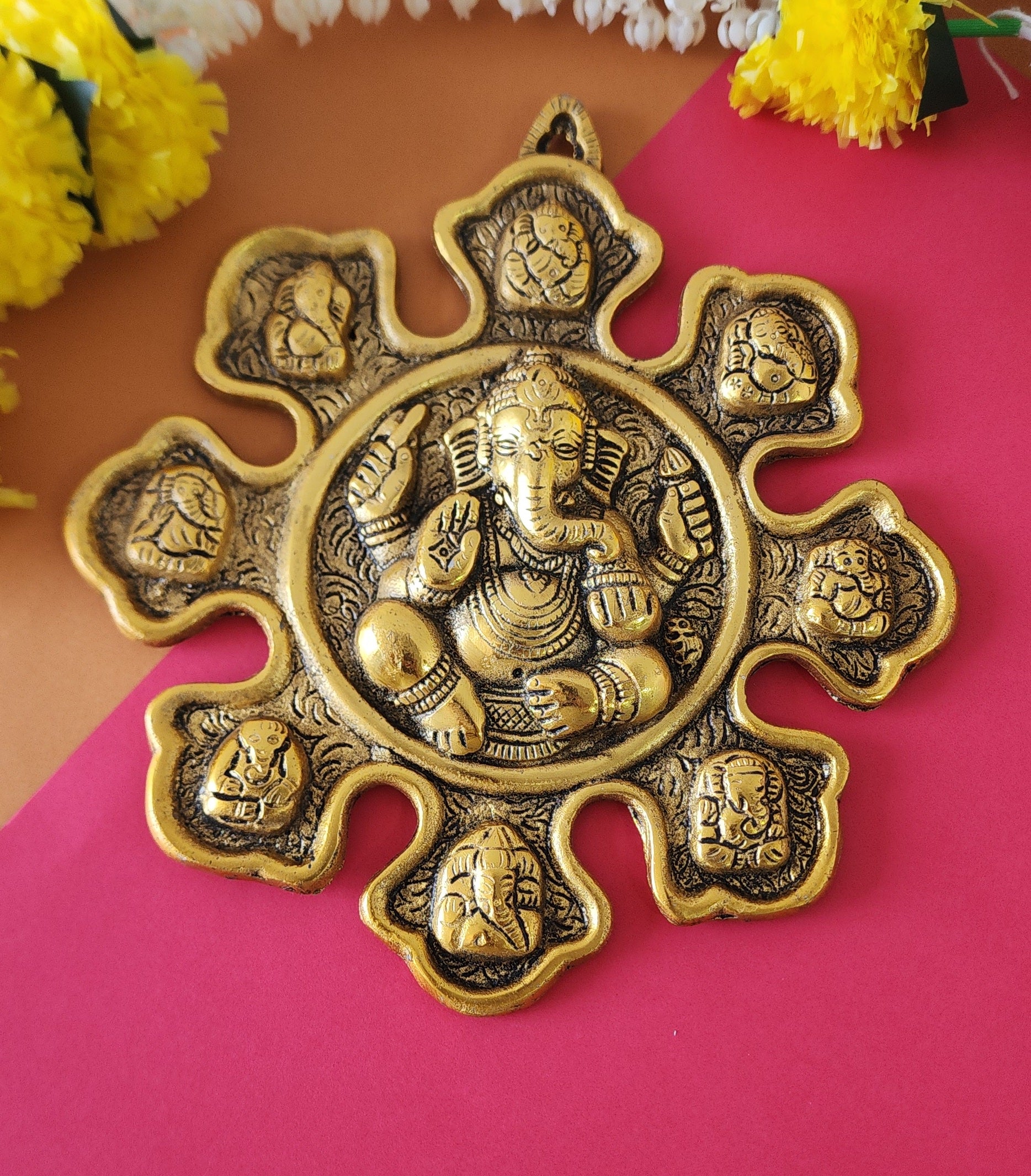 9 variants of Lord Ganesha Golden Metal Wall hanging (Pack of 5/10/20)