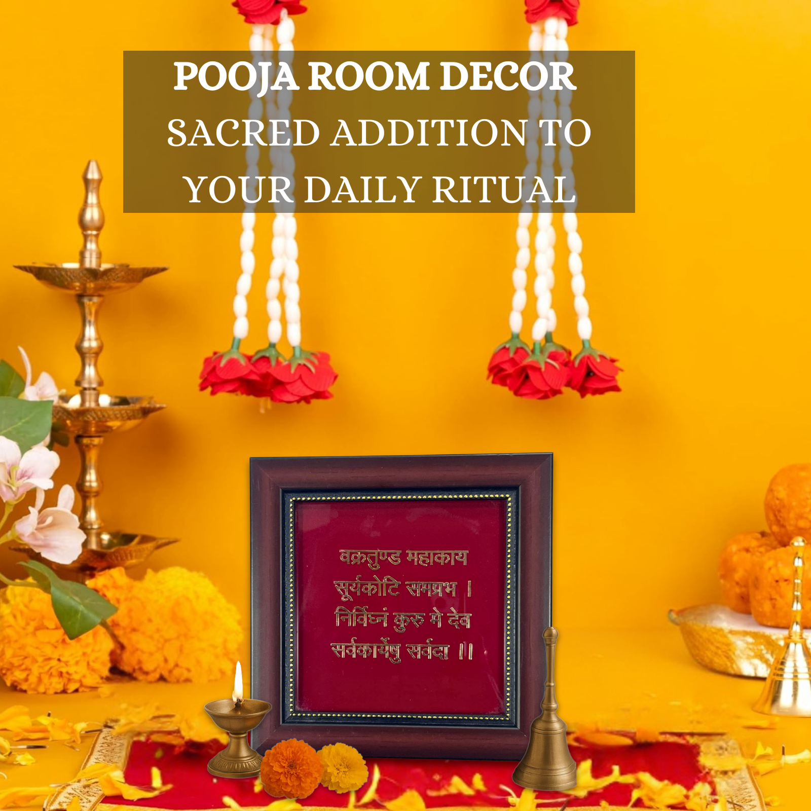 Ganesh Shloka Frame – Vakratunda Mahakaya Mantra Wall & Table Decor for Pooja Room, Home & Gifting
