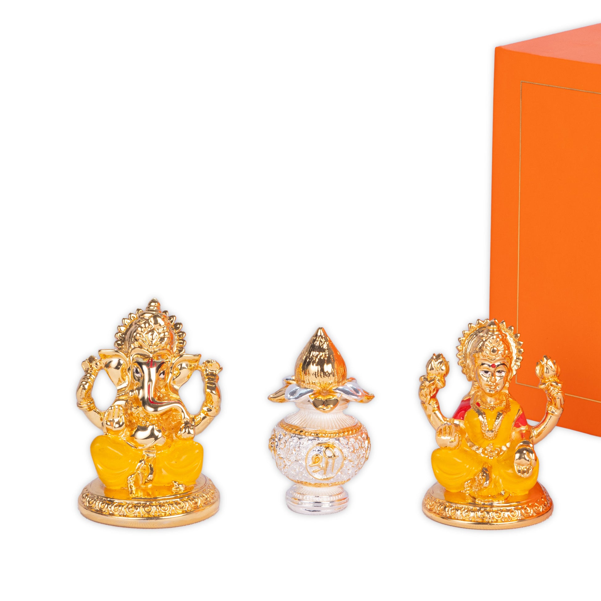 - Divine Combination: This set features idols of Goddess Lakshmi and Lord Ganesha, symbolizing wealth and success, along with the Kalash, representing purity and abundance.