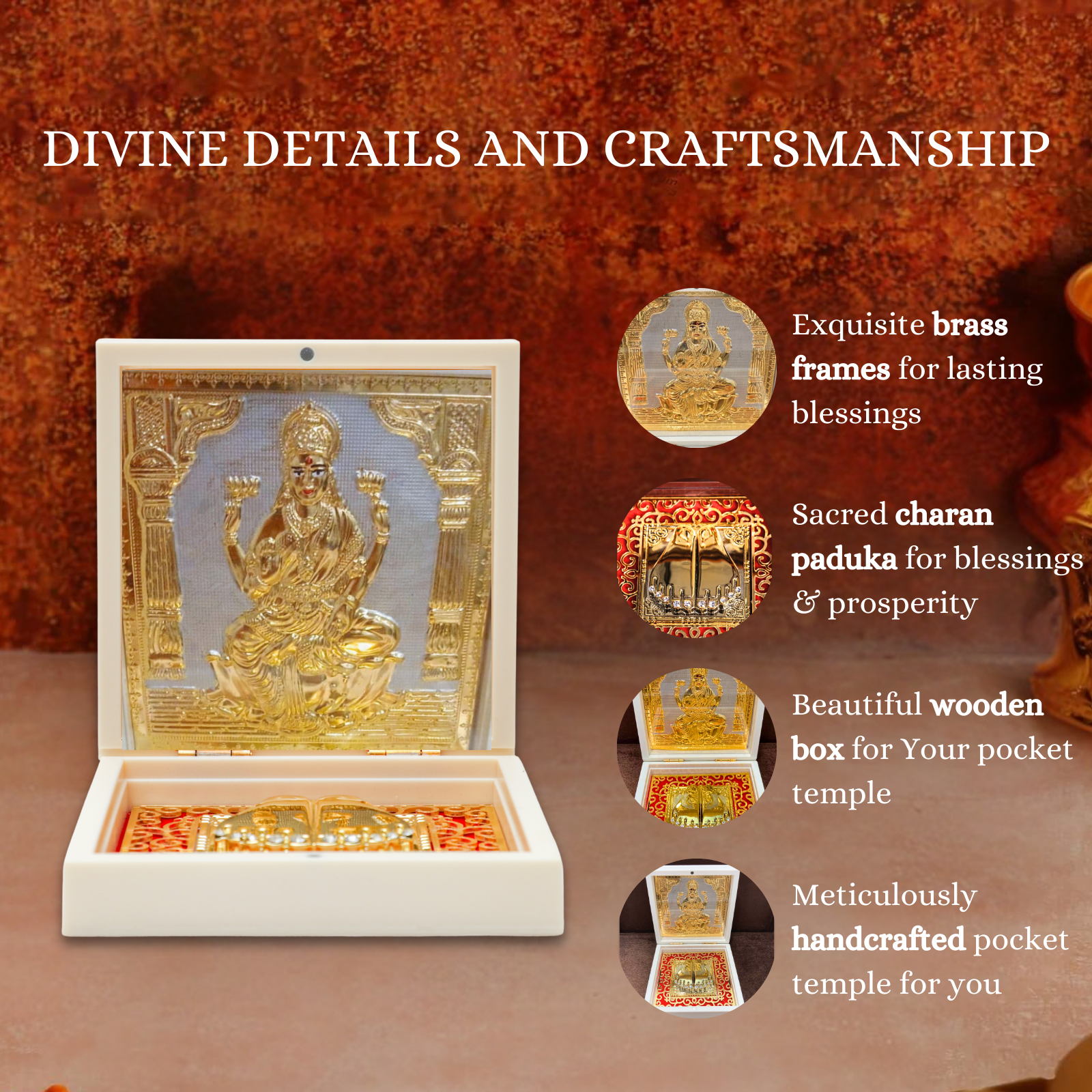 Laxmi Pocket Temple with Charan Paduka – Portable Mandir for Wealth, Prosperity, Pooja & Gifting - Medium - White